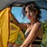 Du zeltest neben der 20-jährigen Leonie, die verzweifelt, ihr Zelt aufzubauen.